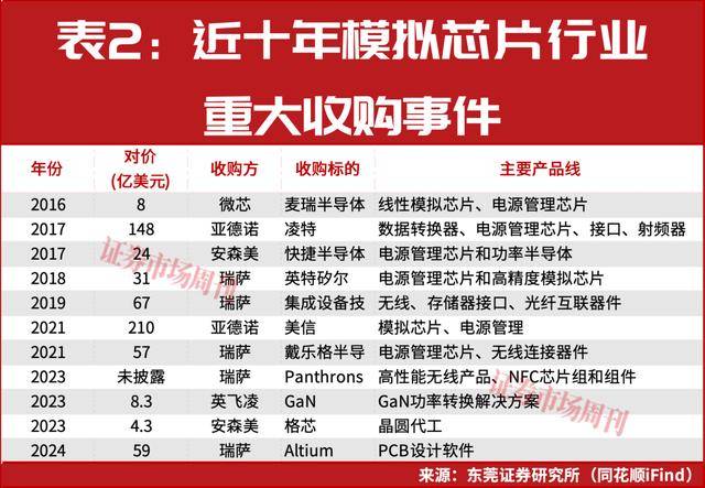 作为企业快速成长的手段之一,并购重组是一个重要选项。目前,部分国产模拟集成电路龙头通过并购开拓新的业务增长点。例如,思瑞浦于2024年完成对创芯微100%股权的收购;圣邦股份收购了感睿智能等企业;纳芯微通过收购麦歌恩完善磁传感器业务布局,还新增了1000余款可销售的产品料号。